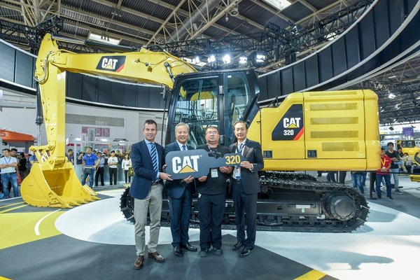 更让人感到欣喜的是,发布会当天,威斯特率先交付了首台新一代Cat®320液压挖掘机,而我们的首位客户也来到现场参加交机仪式,为发布会增添一道亮丽的风景线。